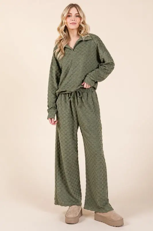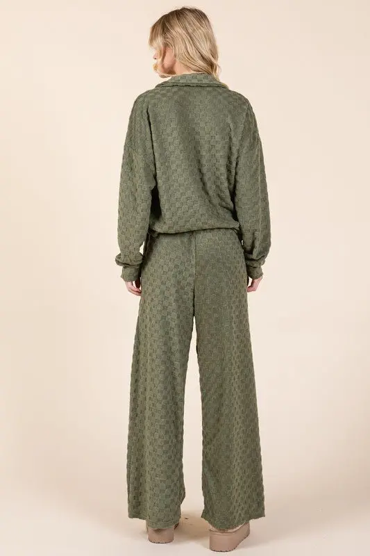 Fashionable checkered pants with a wide-leg silhouette and tied waist. Adds a stylish twist to the classic checkered pattern and flatters with the wide-leg cut. Part of a set. Pair it with the matching top